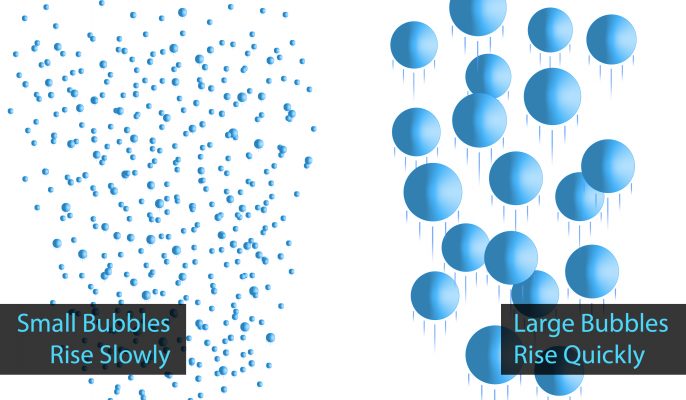 me of exposure is a measure of how long the oxygen bubble is exposed to the water before it reaches the surface and is lost to the atmosphere. The more time the bubbles of air are in contact with the water, the better the chances are for some of the oxygen contained in the air to transfer into the water as free oxygen. - Bubble size is incredibly important. The surface area of a volume of gas is directly related to its bubble size. For the same volume of gas, for instance, if you reduce the size of the bubbles containing that gas by ten times ( making each bubble ten times smaller and therefore increasing the number of bubbles) you will have increased the surface area of that gas 10 times. By doing this, you will be greatly increase the chances of that oxygen gas being transferred into the water due to the much greater surface area of the gas exposed to the water. Also, keep in mind that because these bubbles are so much smaller, they rise to the surface at a much slower rate, thereby adding to the transfer rate of the gas into the water by increasing the exposure time.